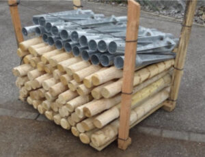 Hierfür stehen diverse Größen, Rundpfähle gespitzt oder stumpf mit Einschlaghülse zur Verfügung.