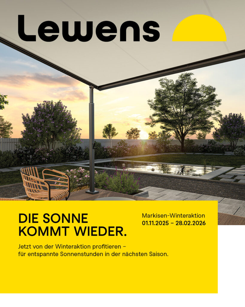 Aktuell bietet „Lewens“ wieder wunderbare Sonderrabatte auf das Markisen-Sortiment.